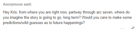 For all I’ve been through, it’s still rather difficult to tell the narrative scale of many of the subplots. For instance, the War of the Docks could just as easily last the whole story out as just for a few more Arcs.