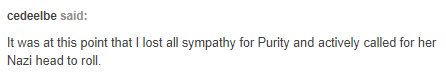 Yeah, there’s being upset about having your child taken away (which happened because the authorities found out she’s an active, high ranking Nazi gang member and criminal – Coil didn’t take Aster away any more than a snitch gives the mean kids detention) and reacting a little harshly to that, which is quite understandable,