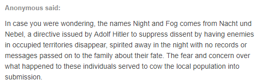Oooh, that makes everything about Night’s power even more clever than it already was. She is the monster that strikes when no one is looking and leaves no trace (although that last part might’ve been Fog’s doing).