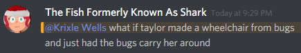 Danny: Oh my God, Taylor, I’ve been so worried abo– wait, are you… sitting on… a swarm of bugs? …what?