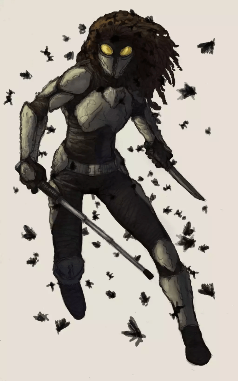 Where Aerryi’s drawing is calm and bright, Neoworm’s is dark and action-packed. The enormous swarm in the background, along with the head-on masked death stare in the foreground, really drives home how powerful Taylor is and that this is not someone to mess with.