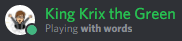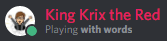 Incidentally, I decided not to switch my Discord icon back to Rose Caltz for the time being (though it remains my personal Tumblr blog’s icon), which has led to a bit of a crisis of color on the servers where my name before Christmas was “King Krix the Pink”: