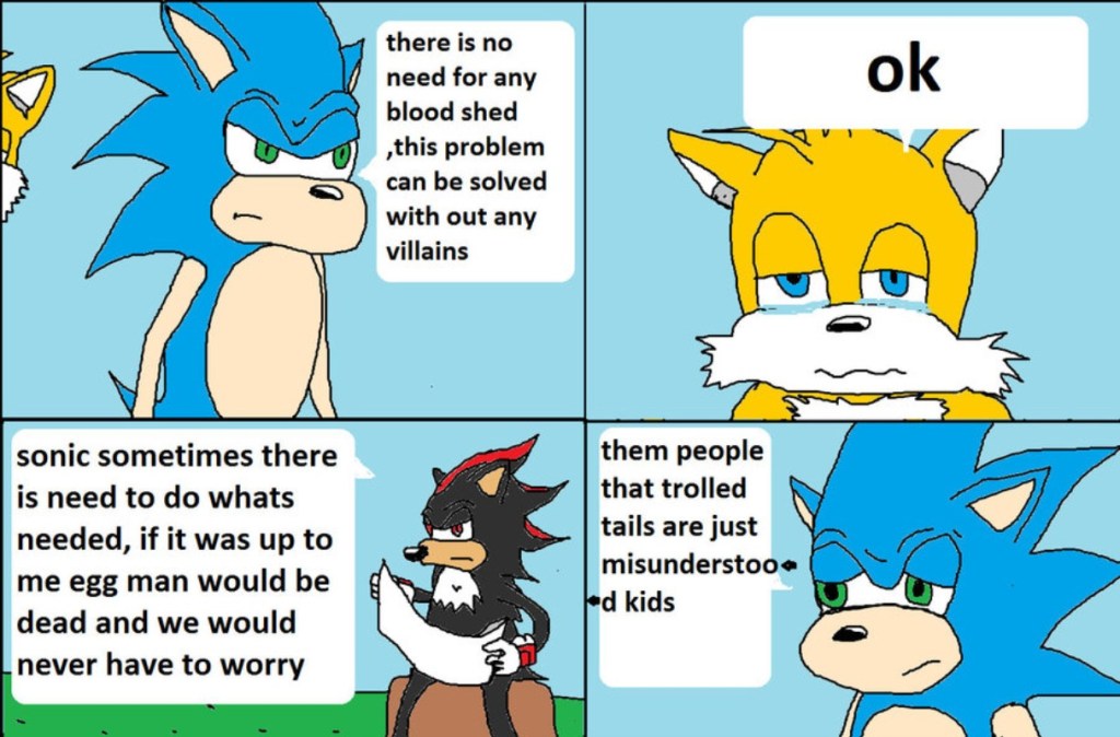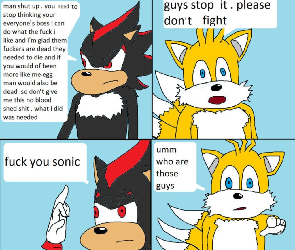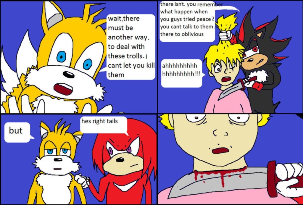 This was the first chapter of Tails Gets Trolled, the comic epic of Tails and his friends dealing with a cabal of internet trolls. That’s really all there is to say on the matter.